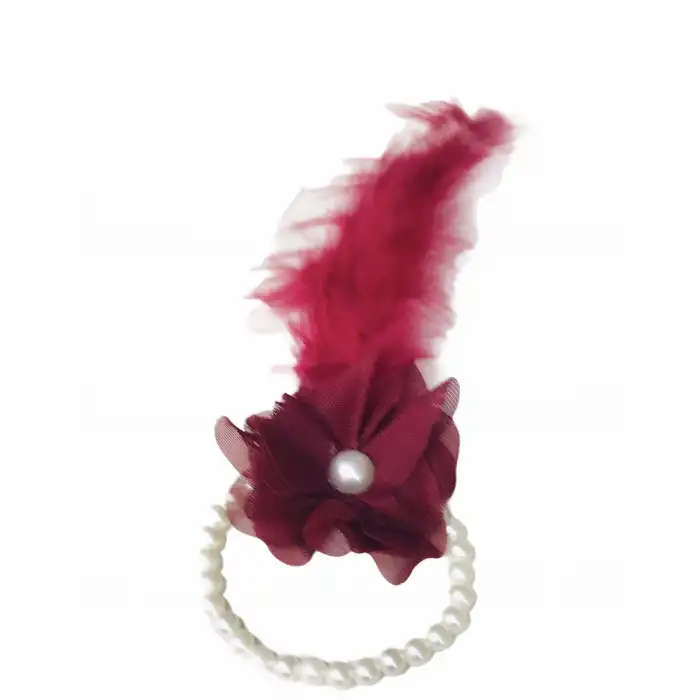 Nedime İncili Tüylü Bileklik 10 adet bordo renk
